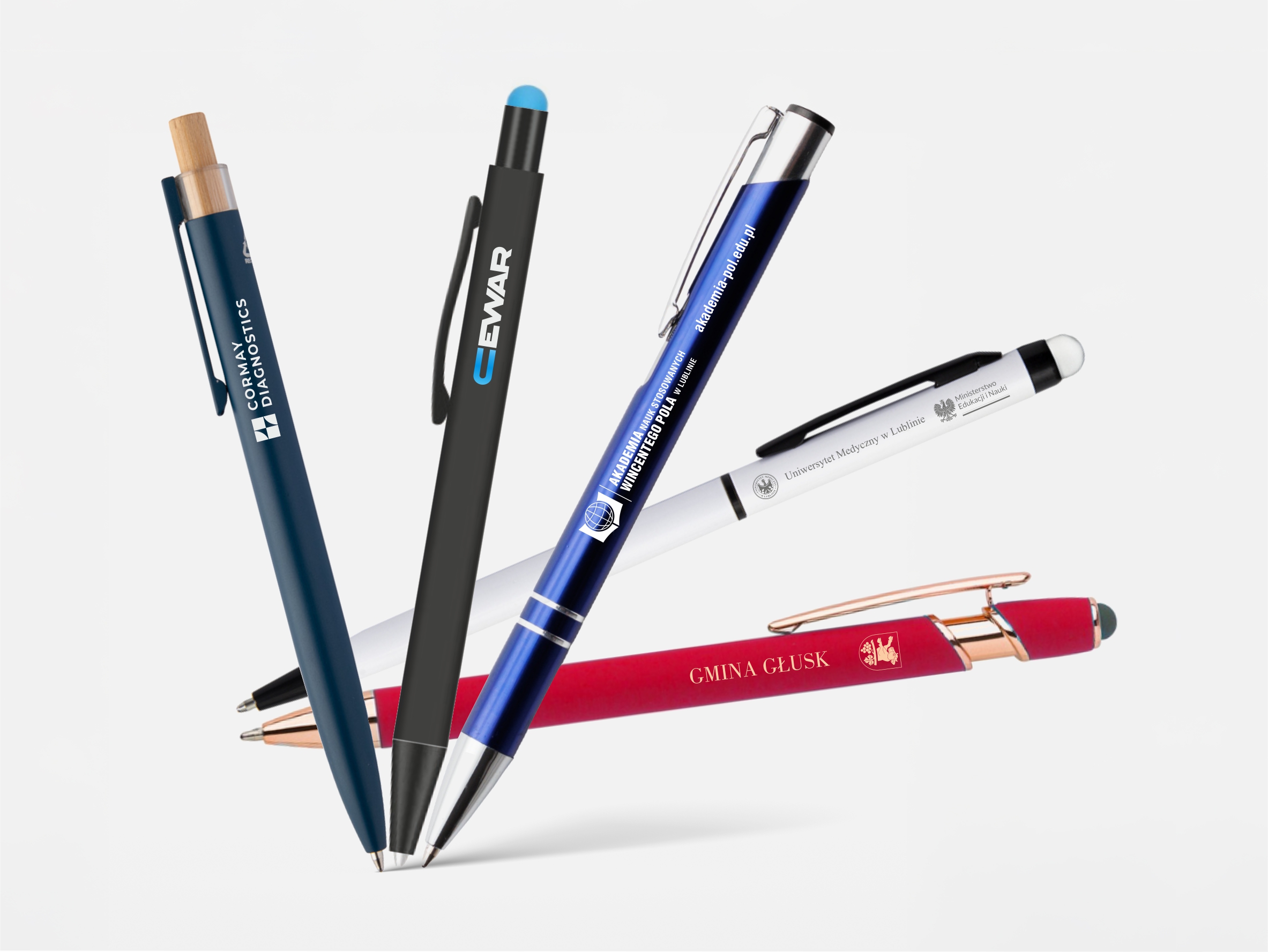 Długopisy reklamowe dostępne są u nas w wielu wariantach. Oferujemy klasyczne modele plastikowe, eleganckie wersje metalowe, ekologiczne z bambusa, a także kartonu i aluminium z recyklingu. Dysponujemy również długopisami wielofunkcyjnymi, soft touch oraz z końcówką do ekranów dotykowych.